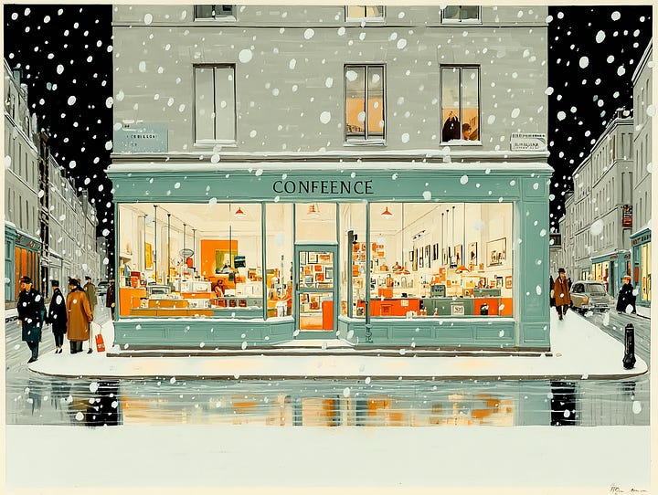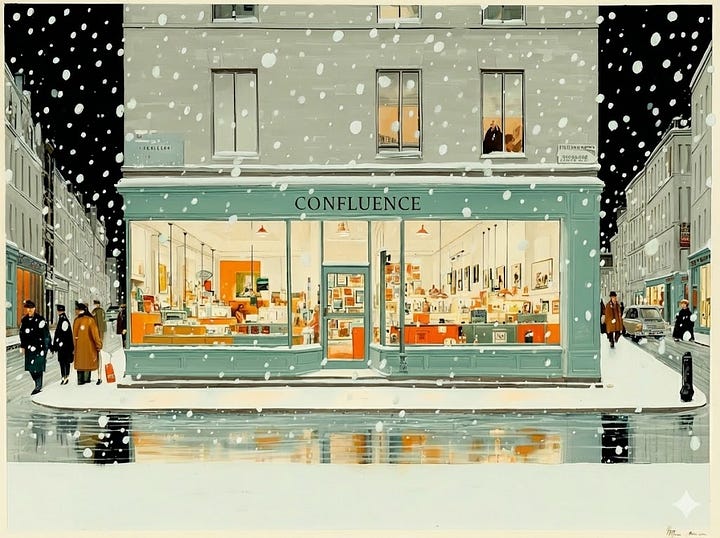 You’ve already seen the result: it’s the cover image for this edition. The image below on the left is what Midjourney produced. The image on the right, which we used for the cover, is what Gemini produced when asked to correct the spelling of Confluence and leave everything else intact.