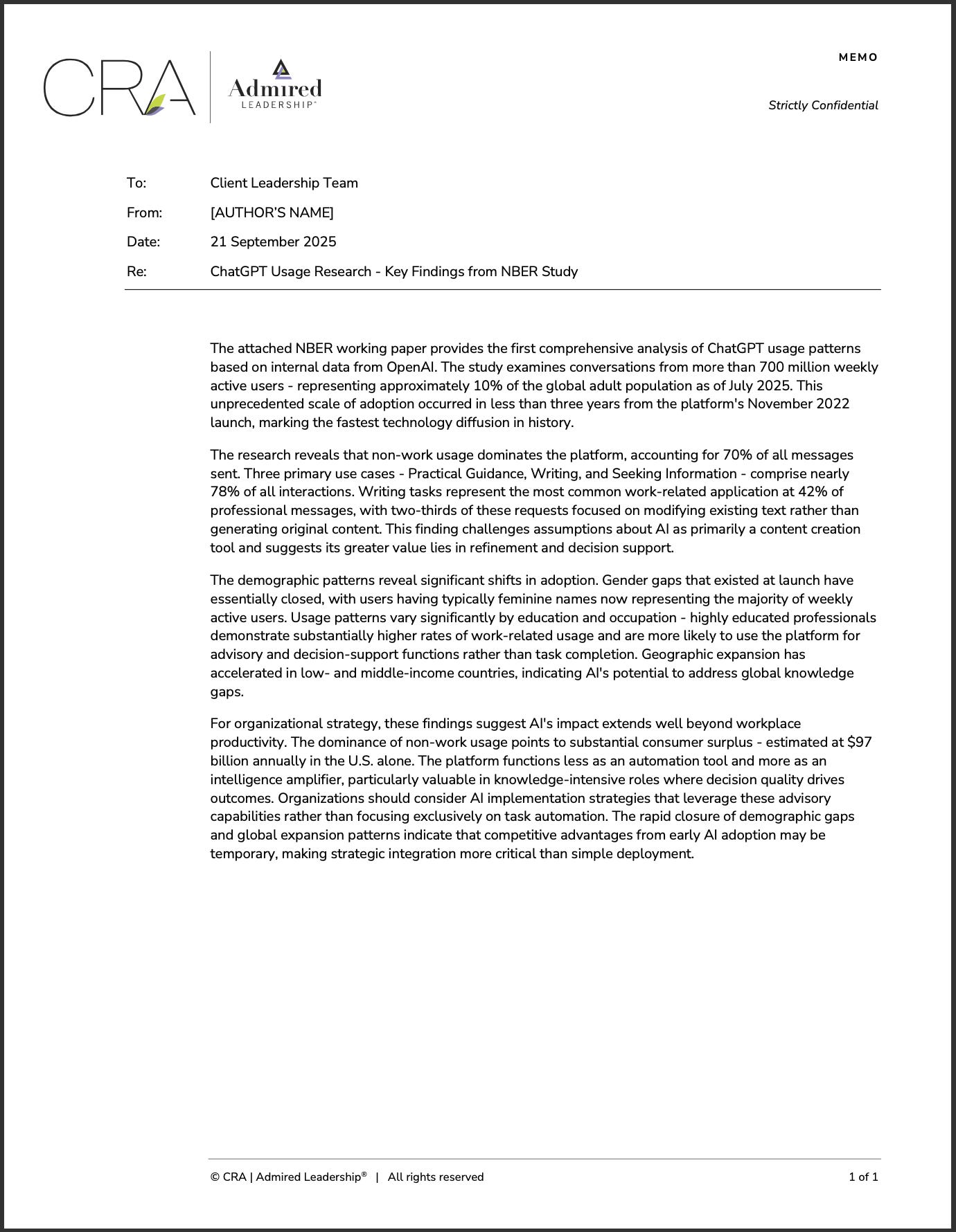 To test this we gave Claude Opus 4.1 (with reasoning turned “on”) our firm’s client memorandum format, the PDF of the OpenAI paper we wrote about above, and this prompt: